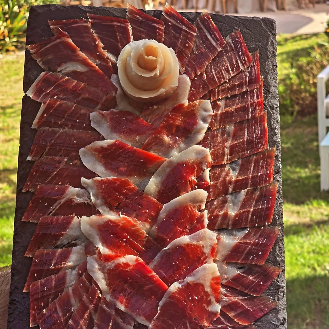 Nuestros cortadores no solo garantizan un corte perfecto que potencia el sabor y la textura del jamón, sino que también convierten el momento en un auténtico show culinario. Ver a un experto manejar el cuchillo con destreza y elegancia añade un toque especial a cualquier evento, ya sea una boda, feria, evento corporativo, fiesta privada o celebración temática.